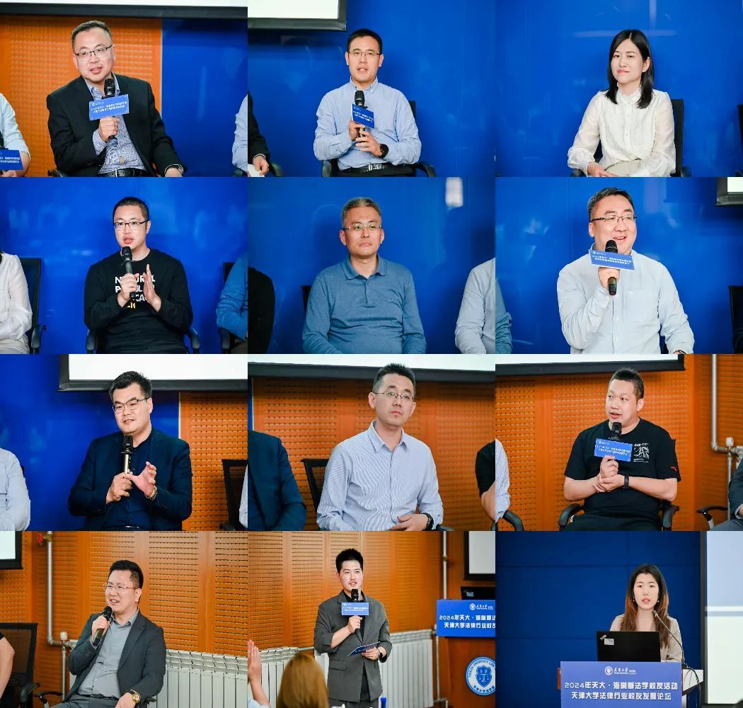 在校友访谈环节,天津大学法学院副教授安宁,2004级法学本科校友、北京高能环境有限公司副总裁、捐赠校友代表高心宇,1998级法学本科校友、天津市和平区市场监管局四级调研员、公职律师于筱江,1998级法学本科校友、天津市高级人民法院四级高级法官田大勇,1998级法学本科校友、天津友发钢管集团股份有限公司董事长助理兼战略发展总监郭锐,1999级法学本科校友、上海新海投资集团有限公司副总裁王宏威,1999级法学本科校友、中建国际建设有限公司总法律顾问李志永,2002级法学本科校友、天津市北辰区人民检察院第五检察部主任王赞,2004级法学本科校友、天津浦丰钜信律师事务所主任蒲松,2005级法学本科校友、天津益清律师事务所副主任柴广参与交流,围绕新形势下法律行业发展面临的机遇挑战及青年法律从业者如何做好生涯规划这一主题展开研讨。陈武钟主持活动。