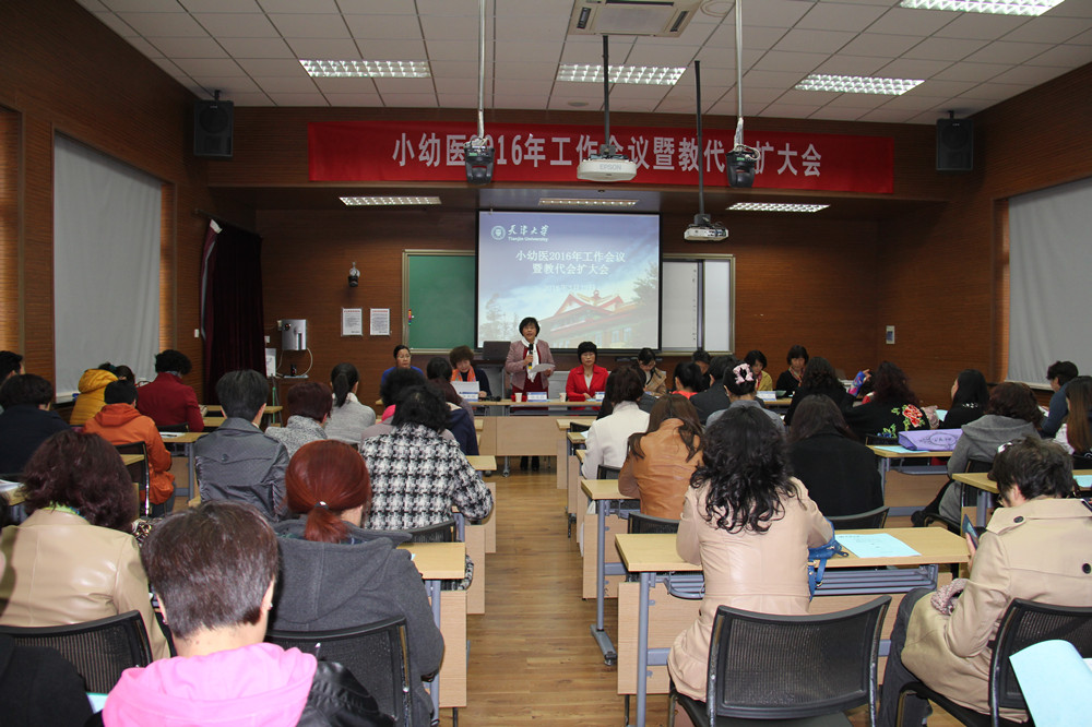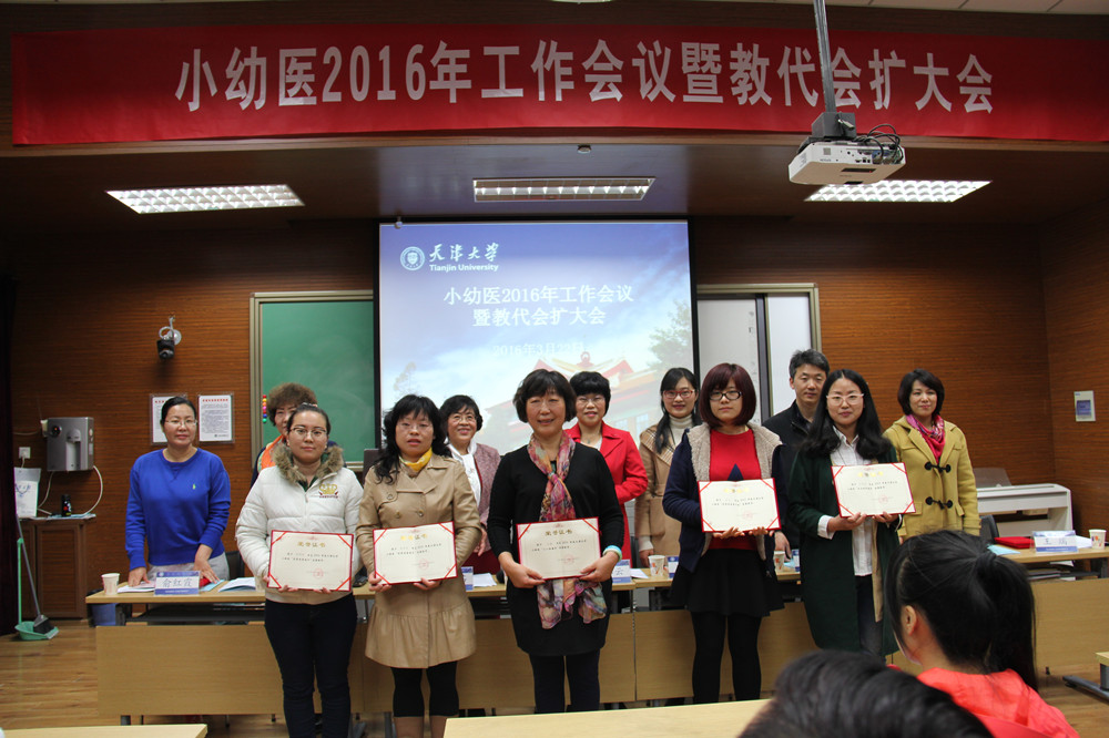 本站讯 (通讯员 董奕杉)为贯彻落实学校九届八次全委会、教育部及我校党风廉政建设会议精神,进一步明确目标、理清思路,团结和动员小幼医全体教职工“凝心聚力谋发展、服务学校创一流”,3月22日下午,小幼医党总支在附小电化教室召开了2016年工作会议暨教代会扩大会,共议建设与“双一流”相匹配支撑保障体系。校长助理张力新出席会议并受邀“小幼医党员讲堂” 2016年第一讲嘉宾在会后为大家做了“两学一做”专题报告。小幼医教代会代表、总支委员、全体党员、入党积极分子、各单位全体中层及以上干部、各单位全体副高职称及以上业务人员、民主党派代表、女干部联谊会及青年联谊会代表、在职及离退休教职工代表以及获奖的先进个人和集体代表近100人参加了会议,校工会副主席文莉、纪检委监察室副主任于庆雷,小幼医党总支书记赵翠云等出席会议并为获奖者颁奖,会议由小幼医工会主席、教代会主任张文茹主持。