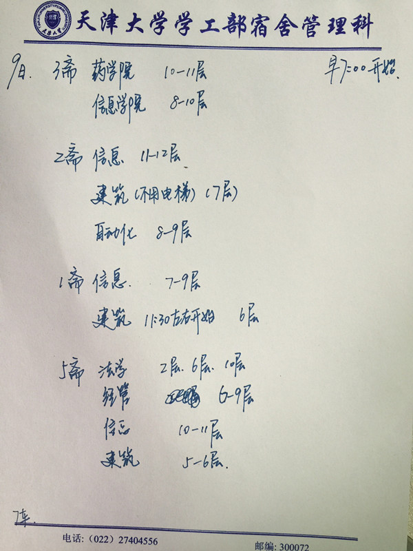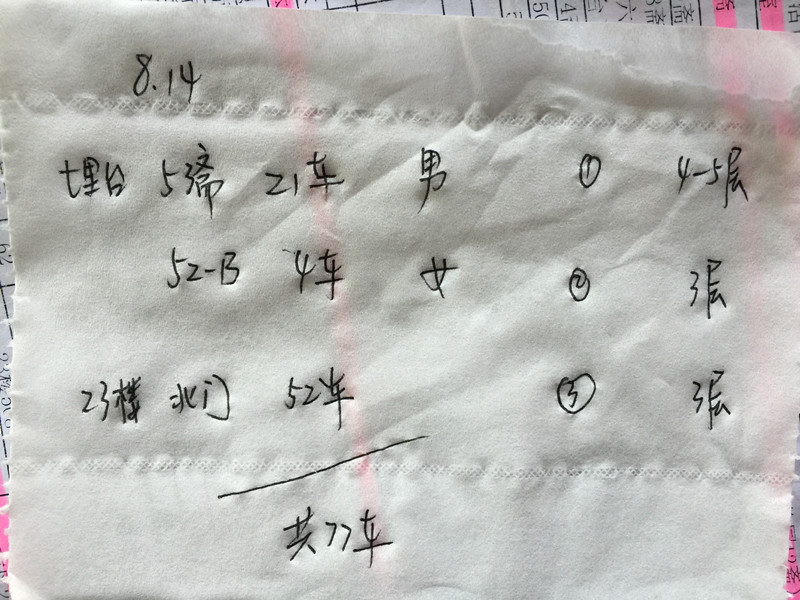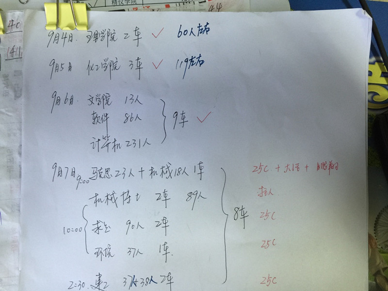 有这样一沓儿微微泛黄,饱含褶皱,并渗透着各种汗渍,甚至是油渍的纸张,在学生宿舍搬迁中悄然产生,并日积月累,以致后来被精心收藏;它们或是一张面巾纸、或是一页废旧日历、抑或就是一张普通白纸,但却独一无二,因为它们就是学生搬家圈儿里人都知道的“调度老板娘”的“记账本”,是宿舍搬迁进展的指引,也是宿舍搬迁的见证!