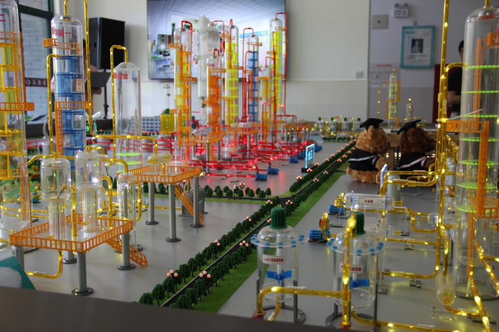 这套模型由天津大学化工学院牵头、联合建筑学院、自动化学院共同设计制造,展示着生活中各类化工产品生产、制作的流程和制作出来的生活产品,模型将在新学期应用到松江二中的化学学科教学中。