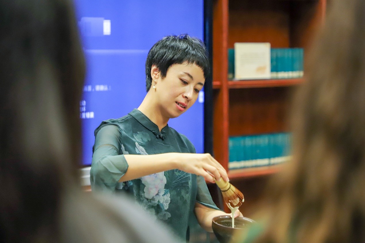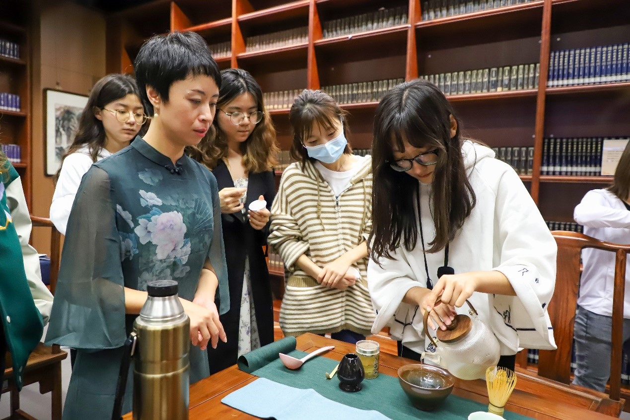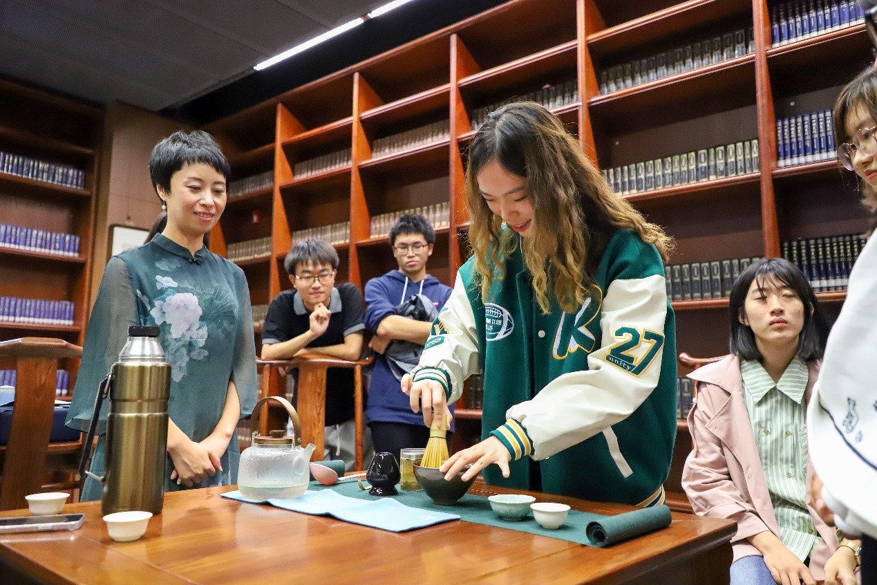 本站讯(记者 摄影 刘延俊)10月3日下午,“书香茶话承国韵,无需笔墨绘丹青”宋代点茶体验活动,在北洋园校区郑东图书馆日新书斋举行。二十余位同学共同体验了点茶流程,亲自制作点茶作品,共品香茗,感悟生活之美。