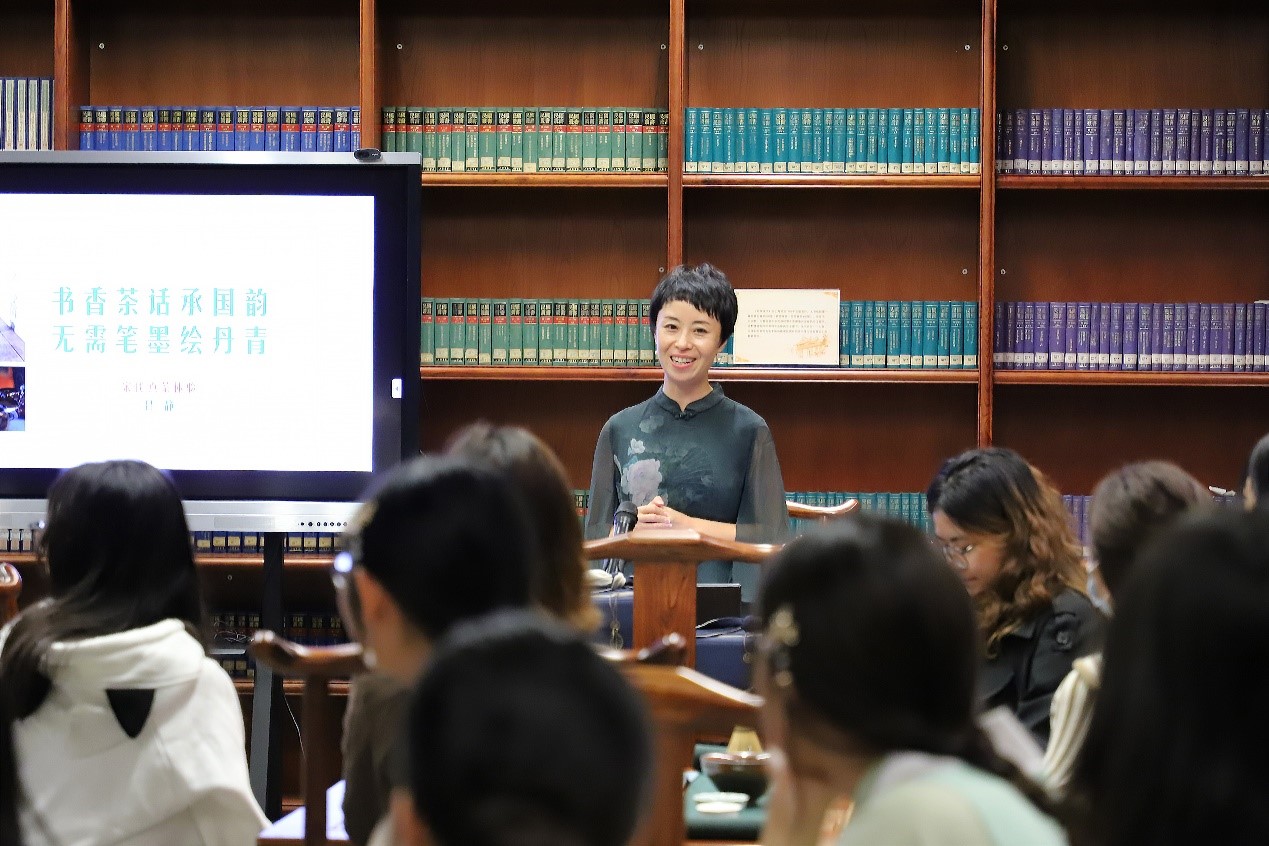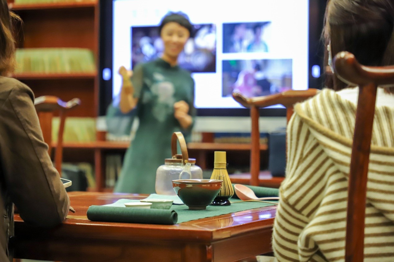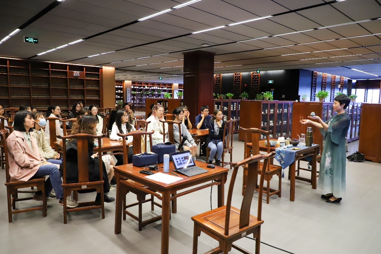 本站讯(记者 摄影 刘延俊)10月3日下午,“书香茶话承国韵,无需笔墨绘丹青”宋代点茶体验活动,在北洋园校区郑东图书馆日新书斋举行。二十余位同学共同体验了点茶流程,亲自制作点茶作品,共品香茗,感悟生活之美。