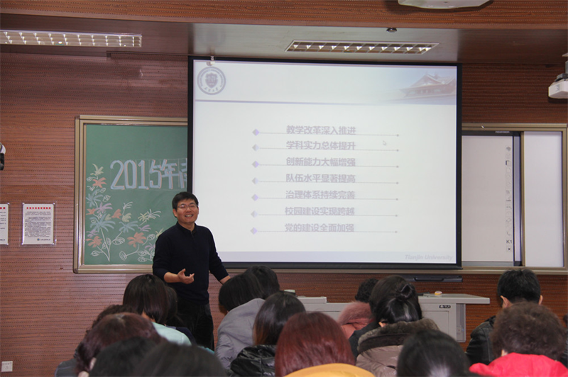 根据系列活动安排,上午请我校发展战略研究中心主任贾启君做了《天津大学“十三五”规划》报告,他在简要回顾了我校“十二五”期间的工作之后,从面临的形势和问题、指导思想和目标、重点建设内容四个方面深入浅出的剖析了学校“十三五”规划的详细内容。指出“十三五”时期是学校贯彻落实教育规划纲要部署,深化综合改革,建设世界一流大学的关键时期,科学编制和有效实施学校“十三五”规划,对于凝聚全校师生的智慧力量,加快推动学校事业发展具有十分重要的意义。并重点就牵涉民生问题的小幼医工作在“十三五”期间的重要作用进行了探讨,期待附小、幼儿园、校医院再接再厉,努力办成学校的优质资源和金字招牌,在学校“十三五”建设期间再立新功。