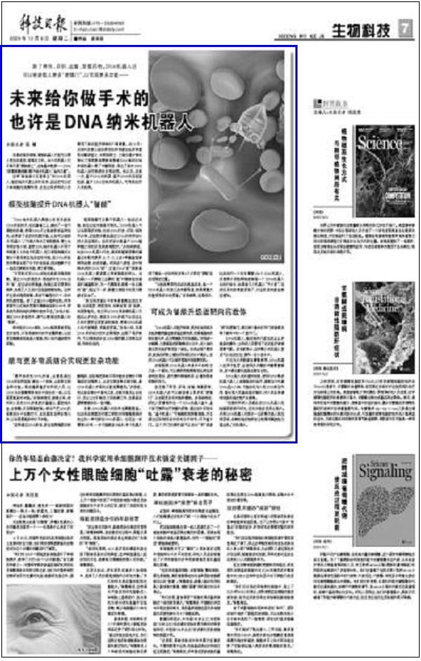 (本报记者 陈曦)目前在很多领域,智能机器人已经可以帮人类完成高危、高难的工作。如今的机器人已不再只是“钢铁战士”,生命基本物质——DNA(脱氧核糖核酸)赋予纳米机器人“血肉之躯”。