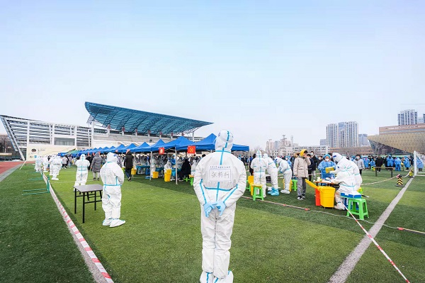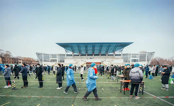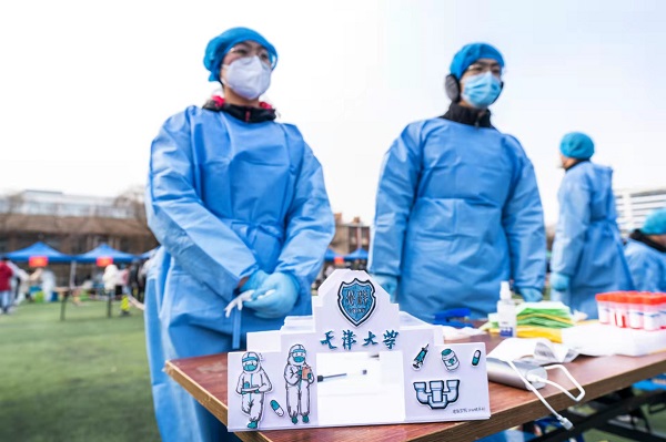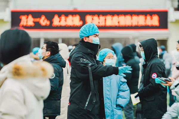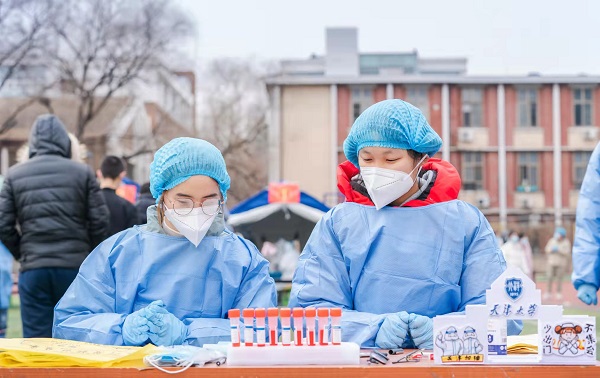 记者注意到,卫津路校区几轮核酸检测时间不断缩短,效率不断提升。一次次“提质增效”的背后,是大批师生志愿者不断付出智慧和汗水。法学院2019级本科生唐努尔·拜山是天津大学退役士兵协会的一员,自1月8日天津突发新冠疫情以来,他和全体在校退役大学生第一时间冲锋在前,志愿报名了卫津路校区全部核酸筛查的志愿服务工作,连续四次不畏苦寒奋战在校园战疫第一线。“面对疫情,请党放心,强国有我——这是每一名天津大学学子应有的担当!”