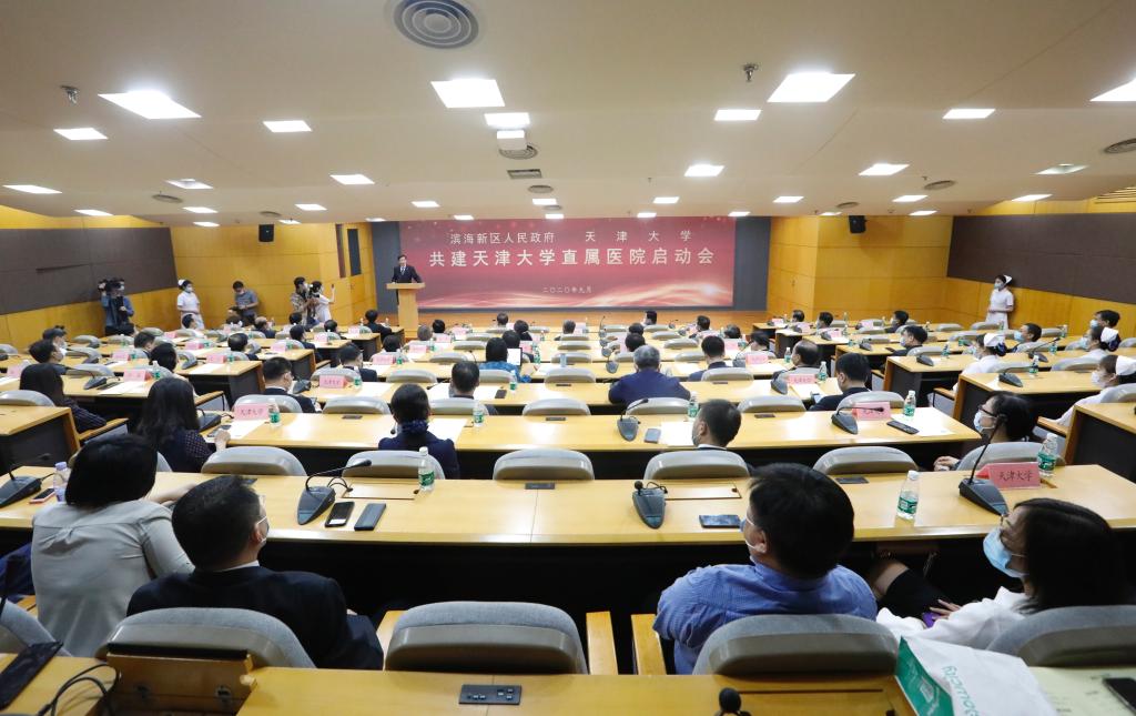 本站讯(记者赵晖 摄影唐蒙) 9月26日,天津市滨海新区人民政府与天津大学召开启动会,依托泰达医院,泰达国际心血管病医院、中新国际医院,共建天津大学滨海直属医院体系,打造医教协同、医工融合的高水平三级甲等医院集成示范区,加快科技创新,促进医学AI、大数据等前沿技术与医疗健康行业深度融合,为人民生命健康贡献“天大”的力量。让科技创新为医学发展赋能,这也是滨海新区人民政府与天津大学落实习近平在科学家座谈会上的重要讲话精神,面向世界科技前沿、面向经济主战场、面向国家重大需求、面向人民生命健康,不断向科学技术广度和深度进军而做出的实际举措。