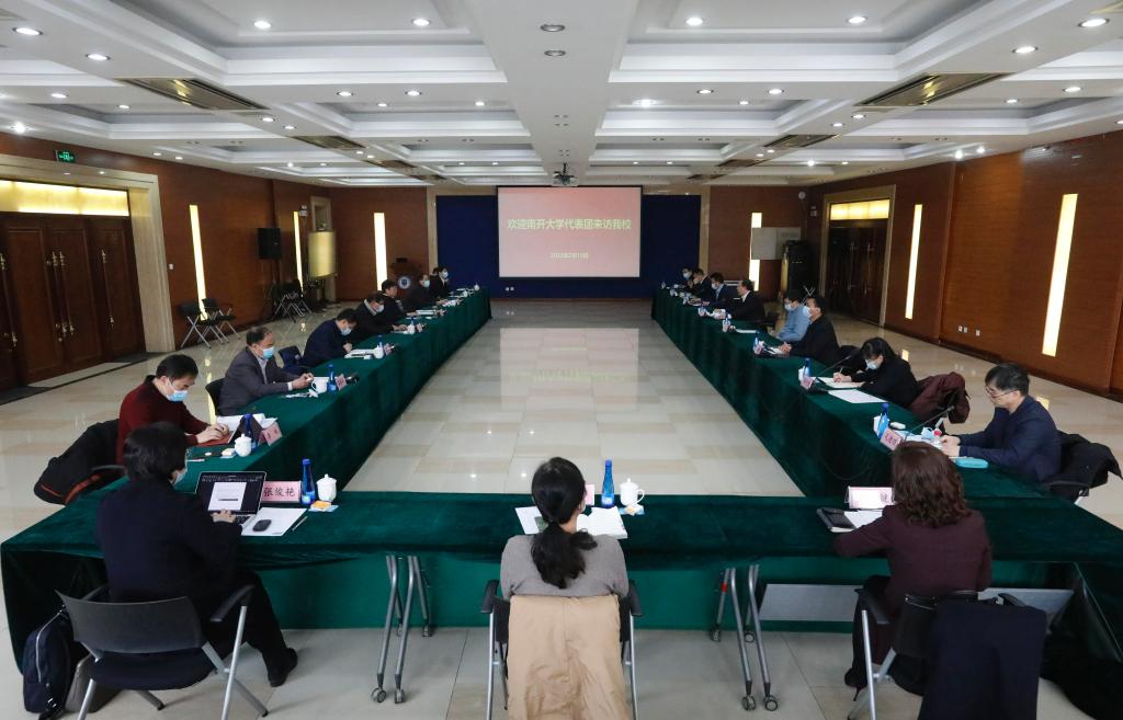 金东寒对曹雪涛一行的来访表示热烈欢迎。他说,1952年,南大与天大楼宇相连、守望相助,相伴70年。两校在长期办学历程中结下了深厚的友谊,在科技创新、人才培养等多方面的合作中取得了累累硕果:共同组建天津化学化工协同创新中心;近五年累计合作科研项目49项;合作开设本科专业20年;互开辅修专业,互开选修课程90多门;2021年11月29日,依托两校的“物质绿色创造与制造海河实验室”揭牌运行。金东寒指出,两校毗邻而居,学科互补,又有深厚的合作积淀和强烈的合作愿望,希望抓住新时代高等教育高质量发展的机遇,开启两校深化合作的新征程。
