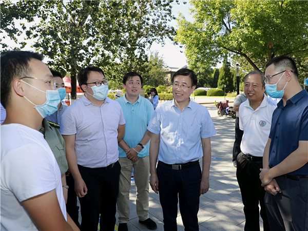 下午,李家俊来到卫津路校区北洋广场迎新接待站,仔细询问各单位新生报到情况,查看为新生精心准备的文创产品和暖心举措,肯定各学院学部迎新工作“用心、有心”。独自一人从江苏徐州来校报到的生命科学学院吴俊腾同学是首届强基计划本科新生,李家俊勉励他努力学习,争做服务国家重大战略需求的卓越人才。在法学院点位,李家俊与来自甘肃省宕昌县的2020级法学硕士新生赵洪昌亲切交谈。甘肃省宕昌县是天津大学定点帮扶的国家级贫困县,近年来学校在教育扶贫、智力扶贫、消费扶贫、产业扶贫、健康扶贫等方向全面发力。“我看到一批批天大师生和扶贫干部们将实干的汗水挥洒在宕昌大地,给我的家乡带来新面貌。他们的母校也让我心驰神往!”李家俊鼓励他担负起兴学强国的天大使命,并亲切合影留念。