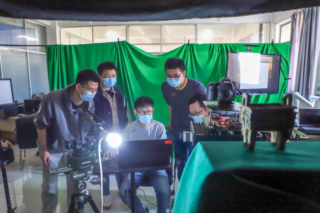 实验室中,一个课题组正在做与湖南省博物馆的合作项目“可移动文物身份鉴别”,研发成果于今年底就要交付使用。实验中要用到6轴桌面协作机械臂、5000W像素的单反、工业相机及微观显微镜头,这些设备的使用需要现场的调试和指导,有很多技巧在里面。有关的成果也将拓展应用于智能加工3D瑕疵检测任务。55号楼外,另一个课题组正利用无人机和移动相机采集空地多视角数据,测试自主开发的空间关联感知系统的各方面性能。