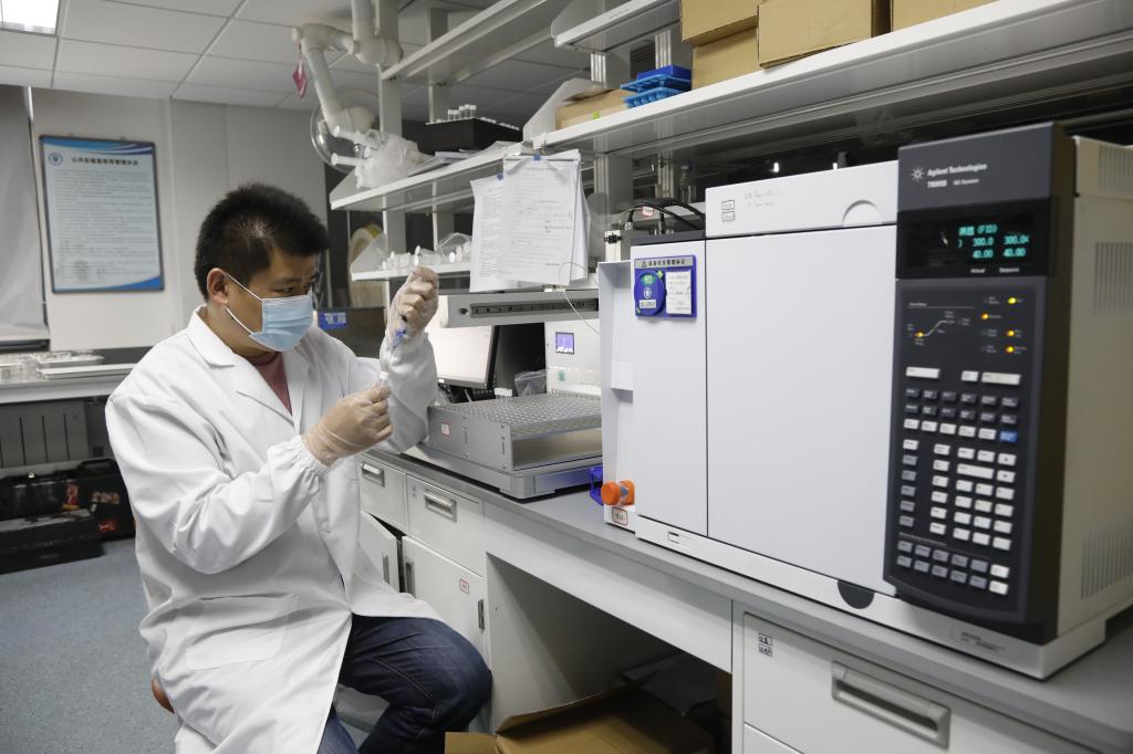 在地科院“纳米铁碳团队实验室”,孙富生老师正在指导学生进行青藏高原冻土好氧性温室气体排放室内培养试验。