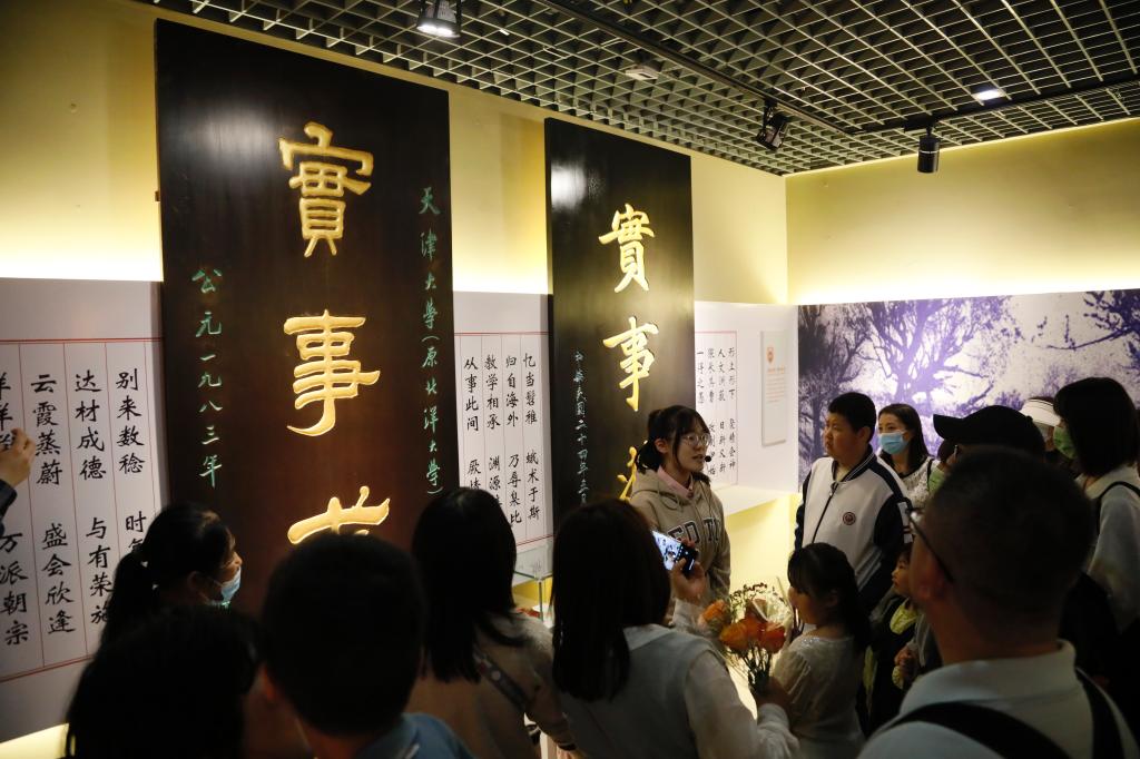 参观校史馆徜徉在中国第一所现代大学悠长办学历程的时空长廊中,去郑东图书馆参观“我们这十年”天津大学事业发展成就展感受天大蓬勃发展的朝气,然后再看看双校区同时举行的新工科教学成果展……在这里,读懂天津大学兴学强国的使命;走进智能电网科普教育基地感受智慧能源,在海洋科普基地体验船舶模拟驾驶,走进大国重器“地震大装置”解读科技奥秘,登上智能驾驶公交体验无人驾驶……在这里,触摸创新的脉搏;走进冯骥才文学艺术研究院参观跳龙门乡土艺术博物馆,再参加一场别开生面的“非遗进校园”活动,在欣赏剪纸、刻瓷、手工榫卯、铜敲工艺展示等同时感受文化之美……在这里,感受优秀文化传承的魅力。校园开放日当天,校友和市民走在校园中,花前拍照、实验室参观、非遗活动现场打卡,听乒乓球世界冠军朱雨玲讲座、青年湖畔感受龙舟队训练的力量之美……重回阔别三年的天大校园,共享繁花似锦。