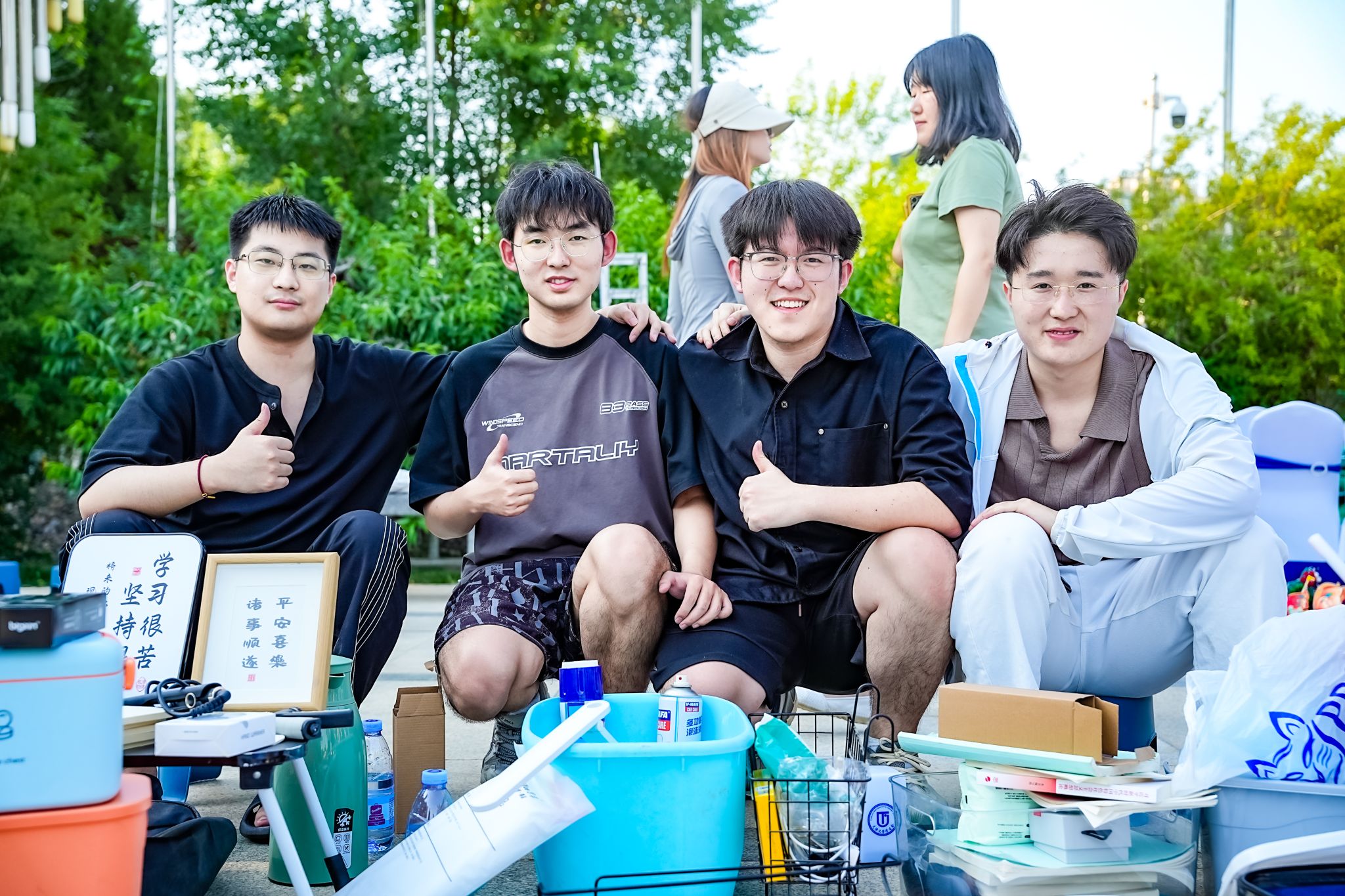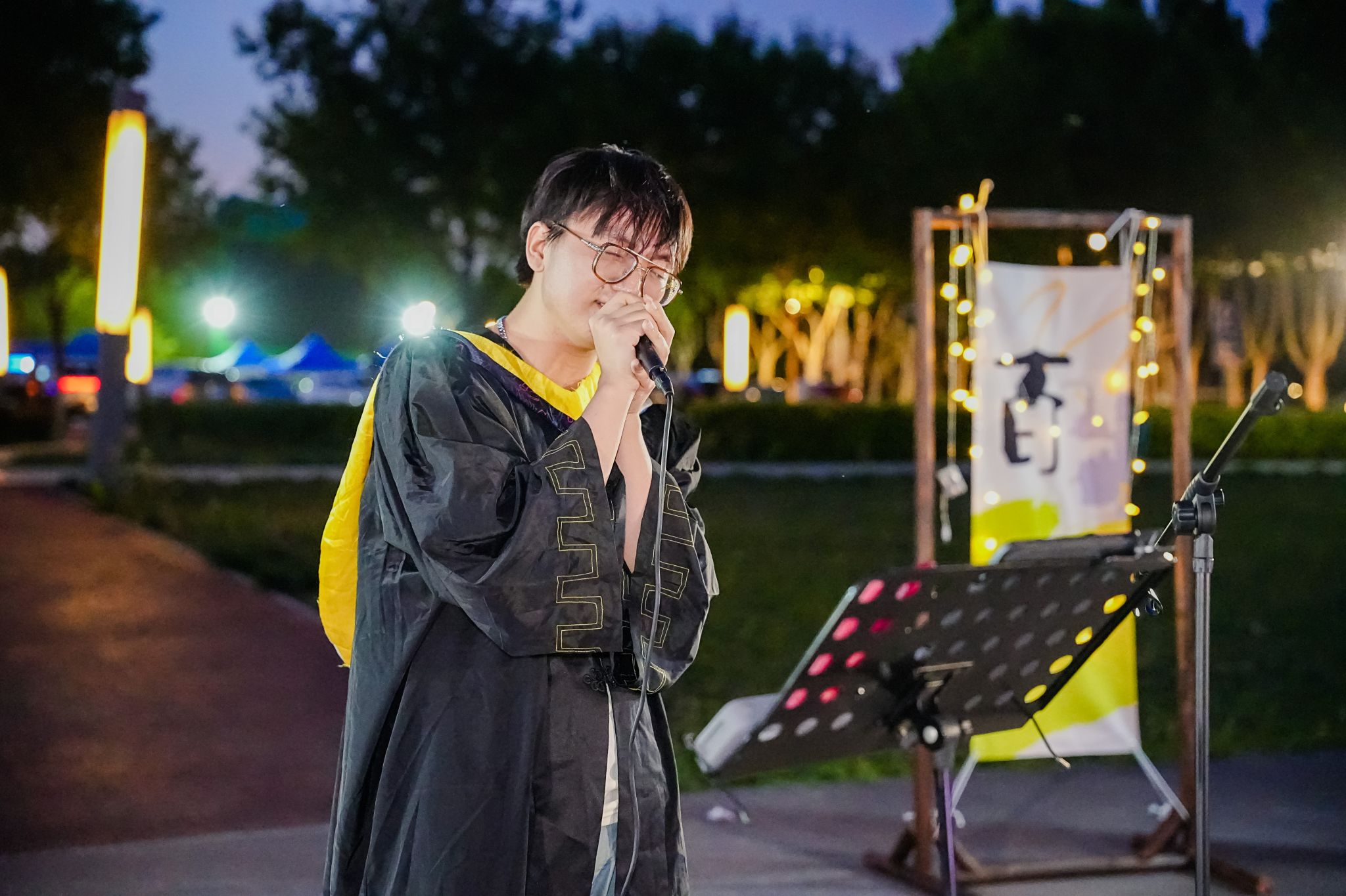 暮色四合,体育场前灯光渐亮,吉他旋律悠然响起。天津大学i唱音乐社唱响《卫津路92号》的故事,毕业生们手持荧光棒随歌声摆动。留言板上,“祝师兄师姐科研顺利”“祝师弟师妹一路惊喜”的温暖祝福,让毕业市集的开放式舞台成为集体回忆的共情天地。