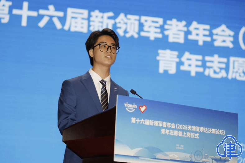 6月21日,第十六届新领军者年会(2025天津夏季达沃斯论坛)青年志愿者上岗动员会在天津大学北洋园校区求实会堂举办。市委常委、河西区委书记王旭出席活动并讲话。副市长李文海出席活动并为青年志愿服务队授旗。