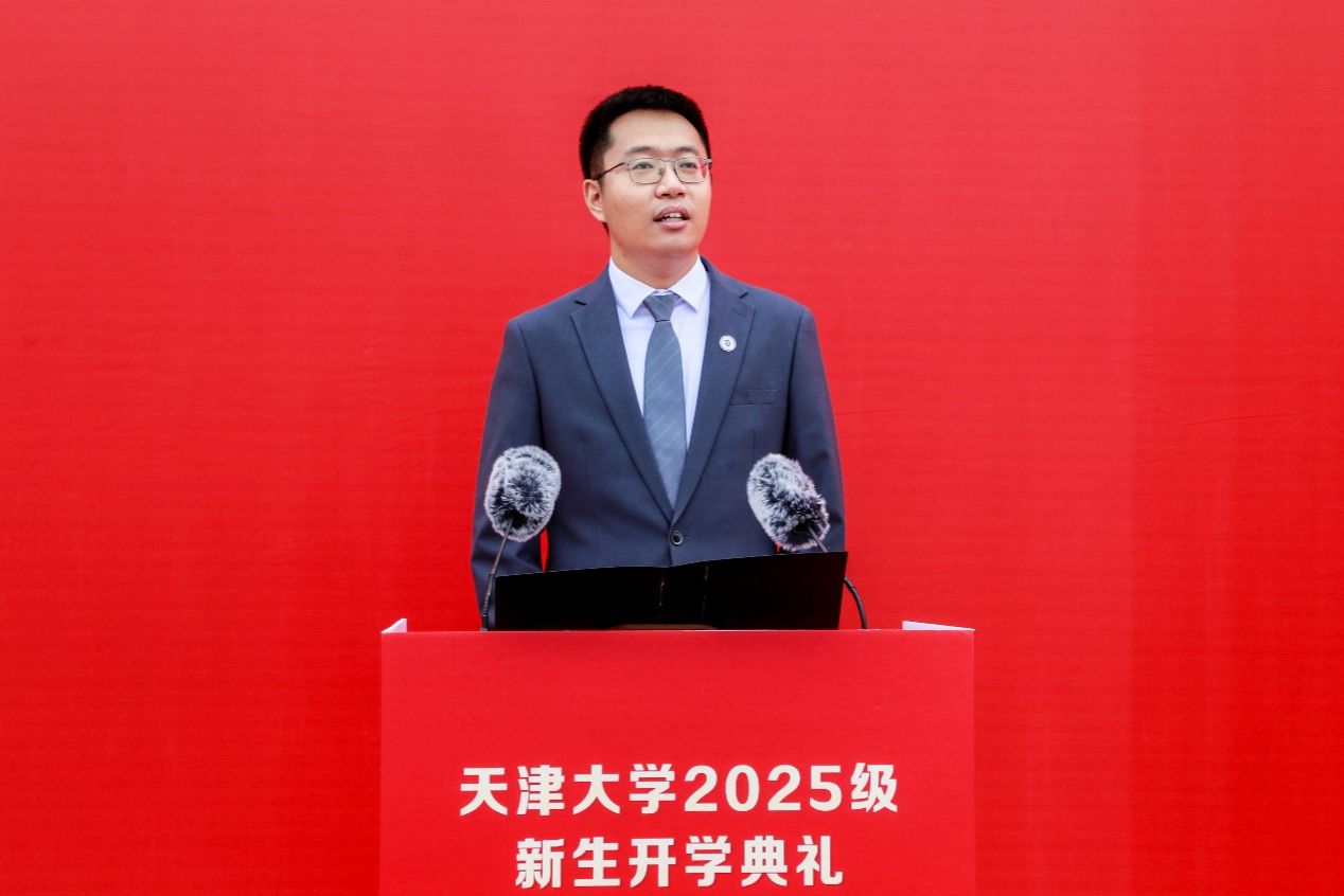 教师代表、天津大学精密仪器与光电子工程学院院长邾继贵教授回望了他在天大求学、工作的31载历程。“130年前,北洋师生战火中办学,为‘实业救国’努力;今天,你们在现代化实验室、智慧教室探索,肩负‘科技强国’使命。”他勉励全体新天大人做人要立心、做事要立业、做学问要立志,把个人的成长融入强国建设、民族复兴的大业。“老师们愿做你们的‘铺路石’”,他希望同学们成为有传承、敢创新、有担当的天大人。