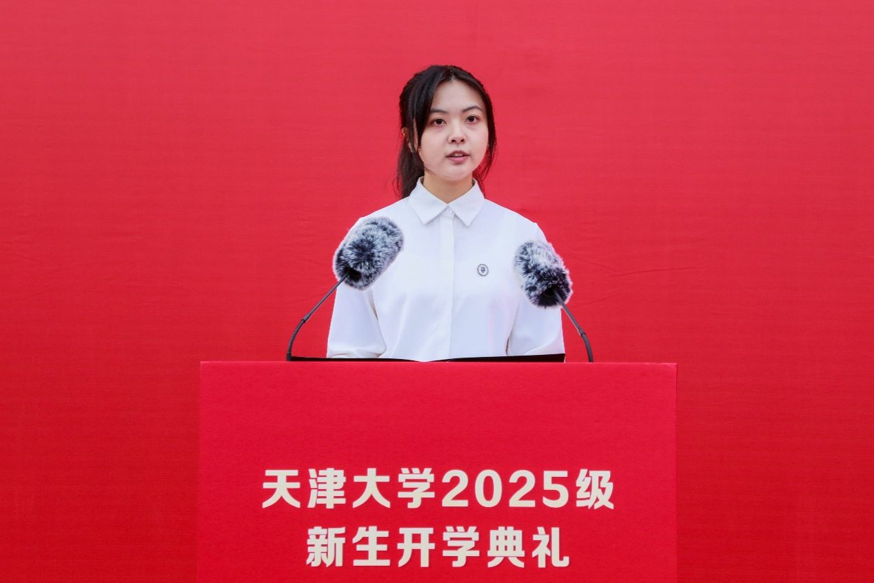 “天大不仅是知识的殿堂,更是面向未来、充满活力的创新引擎。”管理与经济学部陈虹锦作为研究生新生代表发言,从法语学科跨越到工商管理,她希望在交流合作中彼此成就,贡献天大独有的、跨学科的智慧与力量。
