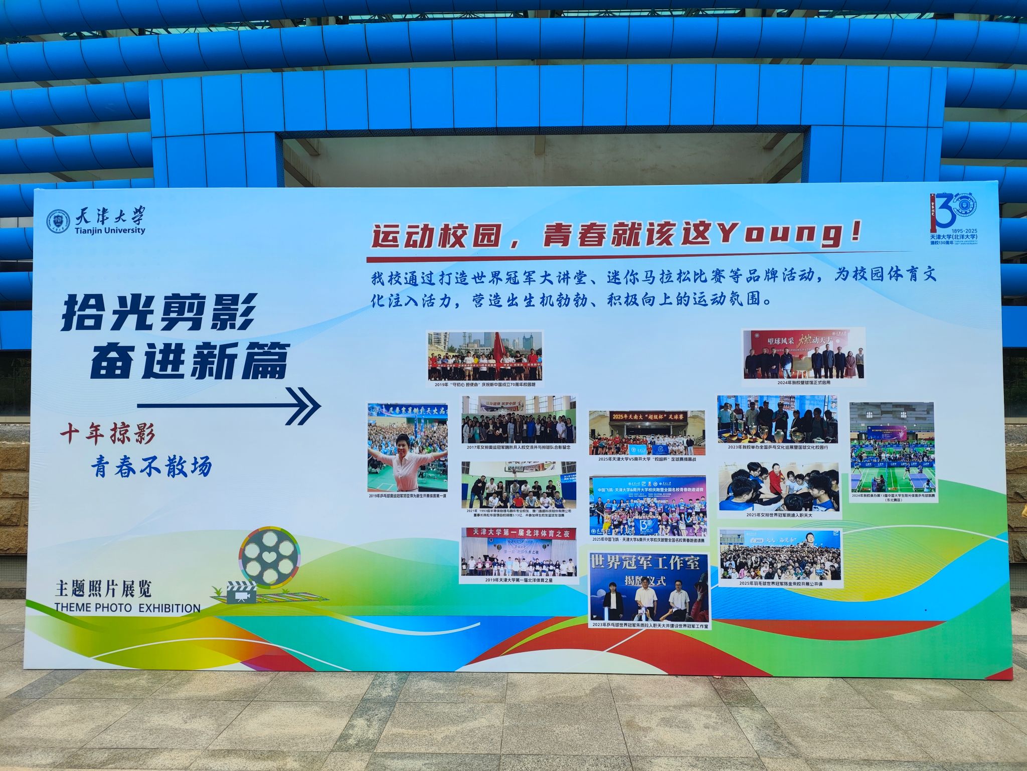 为庆祝天津大学130周年校庆,体育部精心策划“青春强国志,百卅体育魂”主题照片展览,于10月2日至7日在卫津路校区体育场举行。本次展览作为献礼百卅校庆的重要文化活动之一,以光影为媒,用镜头作画,为全校师生及校友呈现了一场穿越时空的视觉盛宴,全景式回顾了天大体育百花齐放的百年历程。