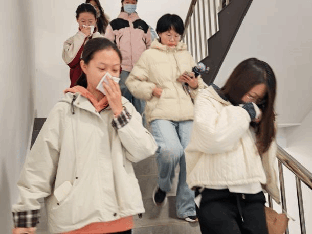 伴随消防广播提示,演习正式开始。各宿舍楼学生按照预定疏散方案,用湿毛巾捂住口鼻,弯腰低姿,沿着指定疏散路线,快速、有序地向宿舍楼外的安全地带集结。在预定时间内,所有学生均安全疏散至指定集合点,做到安全、有序、高效。