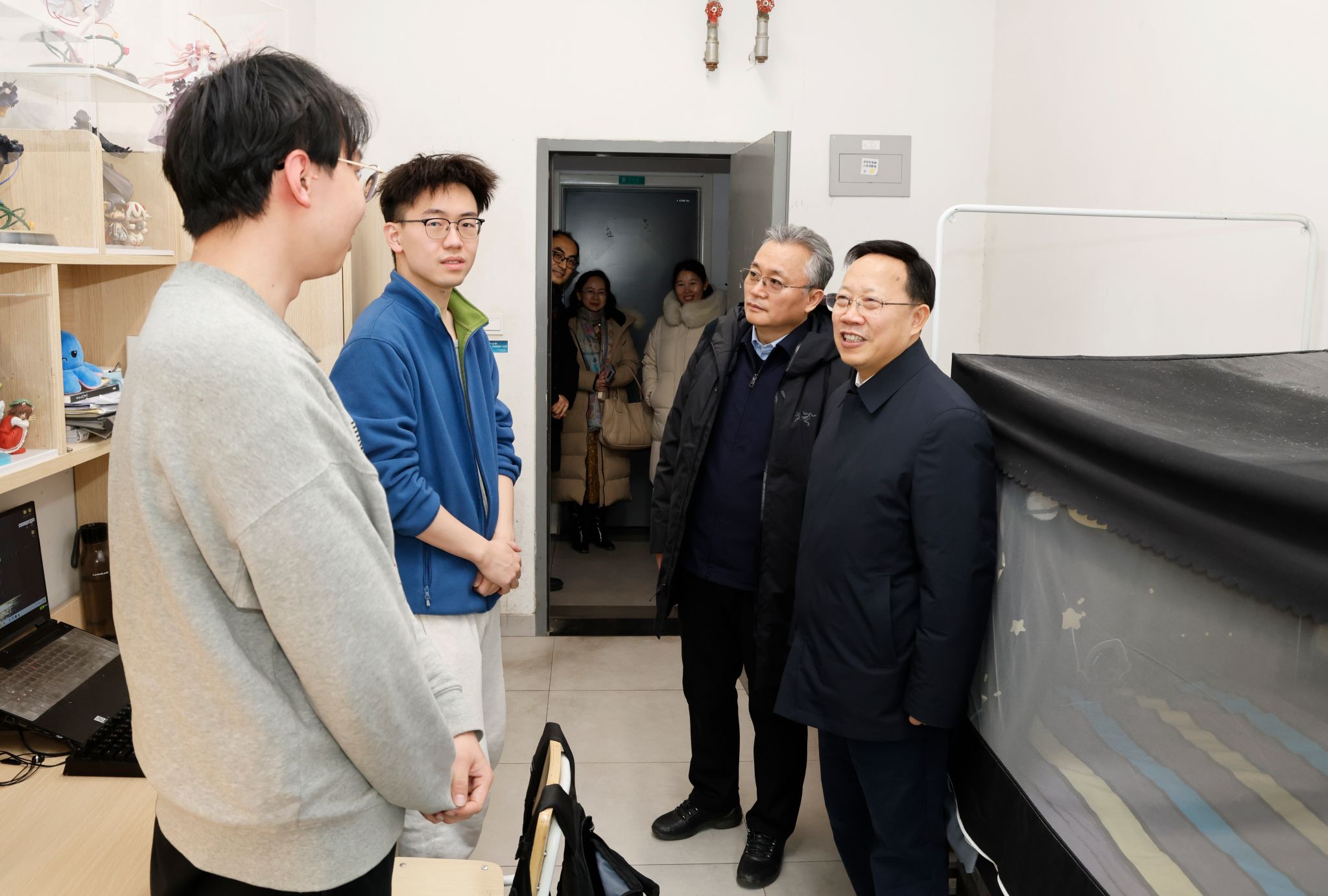 在知园学生社区5A学生公寓,柴立元走进学生宿舍、盥洗室、洗衣房等点位,检查了用电安全、卫生环境及假期留宿学生管理服务情况。他强调,各部门务必强化学生社区安全管理和服务保障,排查消除各类安全隐患,营造安全、整洁、温馨的住宿环境。