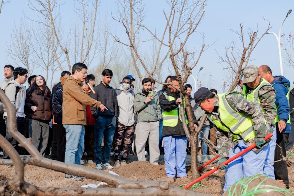本次植树活动,是深入贯彻落实习近平生态文明思想的具体行动,也是强化日常劳动教育、培育绿色理念的生动实践。韩庆华在致辞中指出,天大师生以义务植树活动践行绿色发展理念,中外师生共植友谊林,既为校园添绿,更体现了天大学子与时代同行、与世界相连的宽广胸怀。随后,汪菲为在场师生介绍学校的绿化情况,她表示,校园的每一处景观都是文化传承的载体,相信中外师生共植的这片友谊林将与北洋园的书香墨韵交相辉映,成为校园里又一道动人的风景。