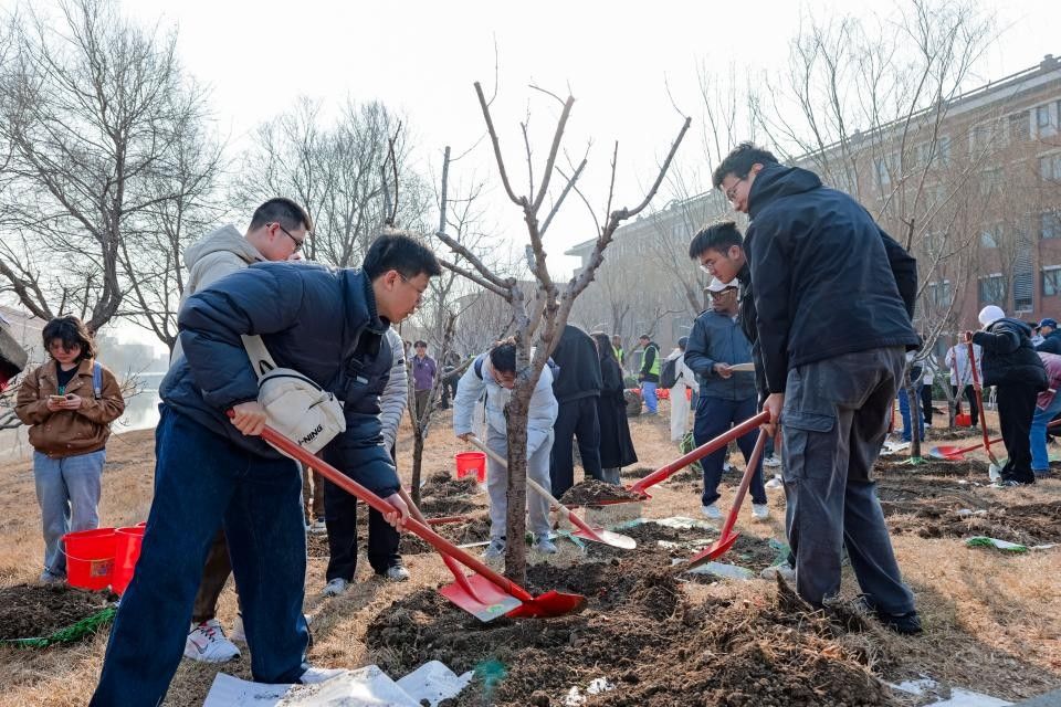 春风吐绿,草木初萌。3月12日,天津大学植树节活动在北洋园校区顺利开展,本次活动以“植绿北洋 逐梦未来”为主题,师生代表齐聚一堂,共同为校园增添一抹新绿,播撒下新学期的希望与祝愿。校党委副书记韩庆华,后勤基建部党委书记汪菲,学工部和后勤基建部第六、第七党支部党员教师代表,建工学院、合成生物学院、理学院、未来技术学院和国教学院的党委副书记、辅导员和中外学生代表共同参与植树活动,活动由学工部副部长史慧主持。