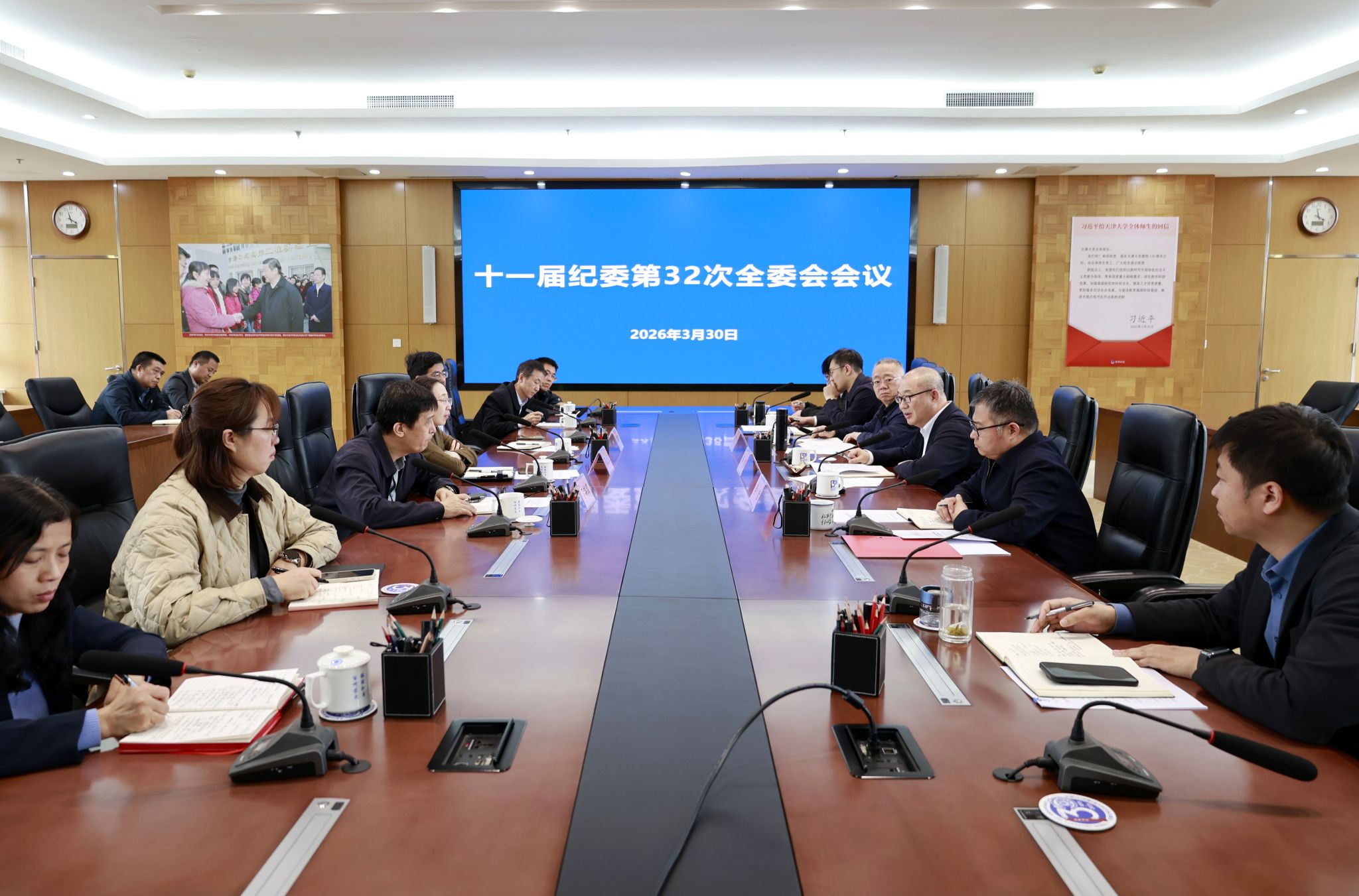 3月30日,天津大学纪委召开十一届第32次全体(扩大)会议,传达学习中央纪委有关树立和践行正确政绩观学习教育讲话和文件要求,研究贯彻落实举措。校党委副书记、纪委书记、监察专员李炜主持会议并讲话,学校纪委委员参加会议,全体专职纪检监察干部、二级纪委书记列席会议。