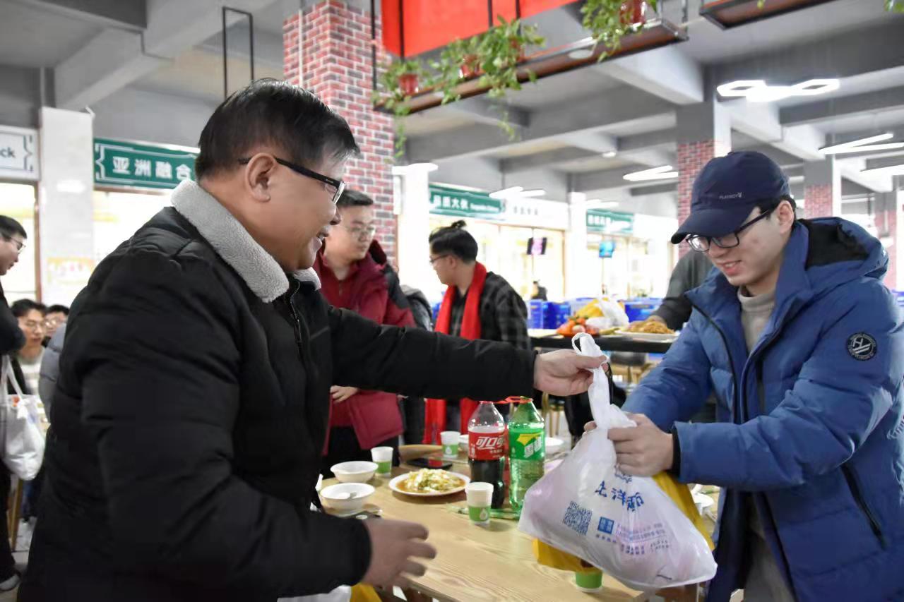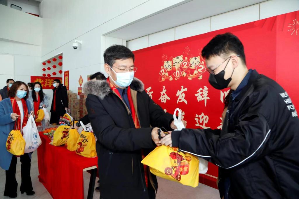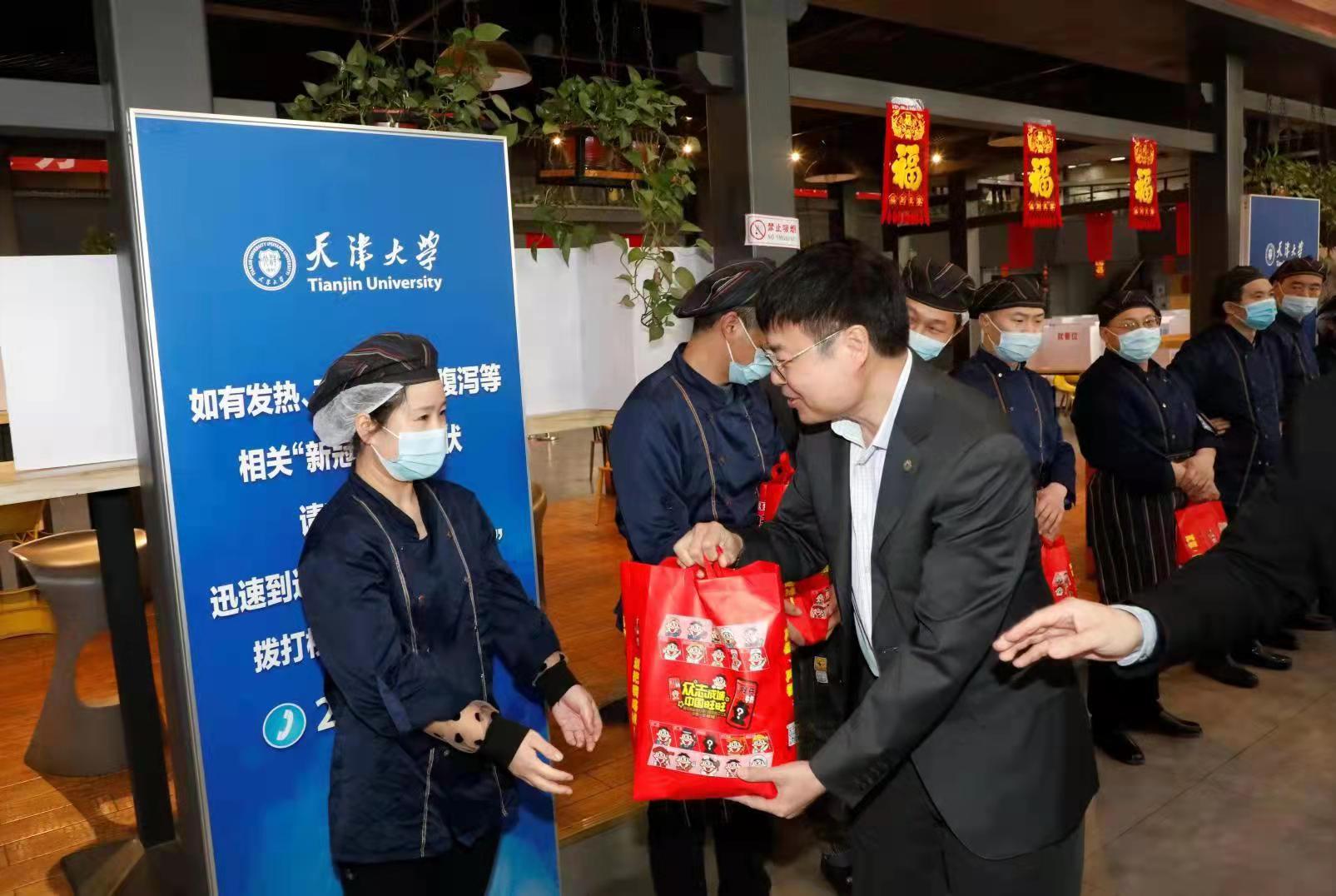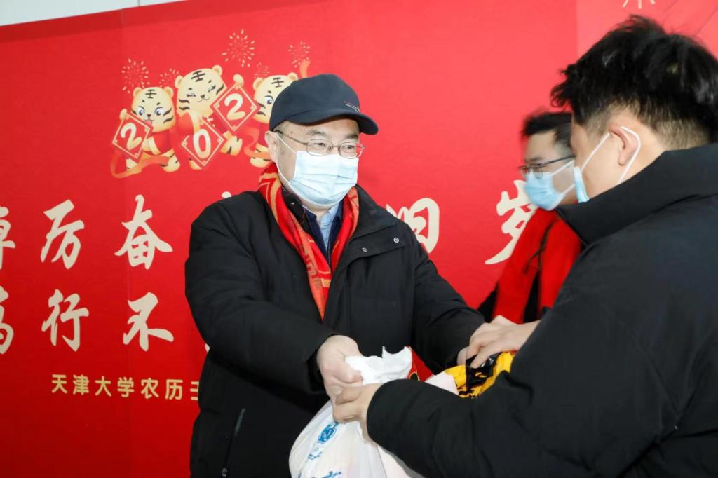 当天在卫津路校区,王树新、元英进、曲凯、郑刚、张力新、刘宁等校领导还来到生命科学学院、地科院、分子+研究院、微电子学院、药学院、海洋学院、法学院等,给留校学生发放新春大礼包、与家长连线拜年、和同学们一起写春联贴福字、发年货包饺子……前一天,郑刚还代表学校领导与国际教育学院师生举行午餐会,向来自十余个国家的留学生代表致以新春佳节的祝福。