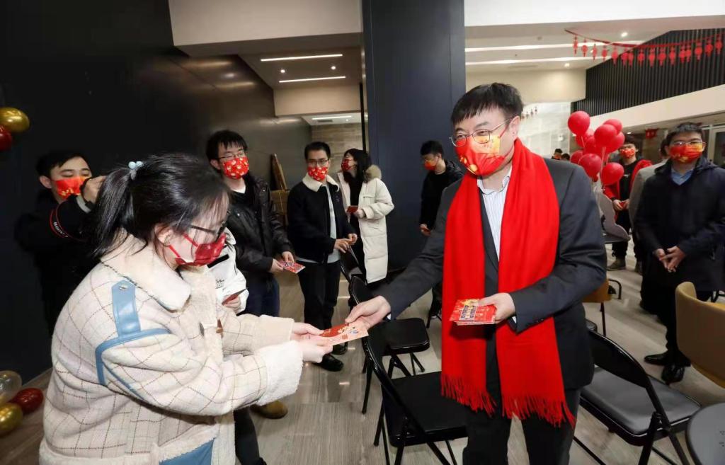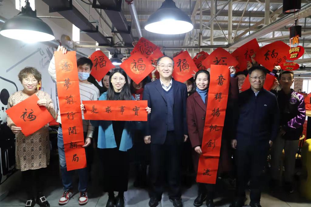 在大学生活动中心,看到正在参加“游园会”的同学们正在写福字和春联、做游戏、拍照打卡,校领导们饶有兴致地参与进来。“家是哪里的?哪个学院的?”“第一次留校过年吗?”“留校过年,计划做些什么?有什么困难吗?”杨贤金一边为大家赠送过年大礼包一边和学生们亲切地唠着家常。