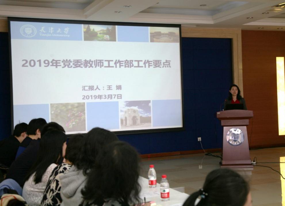 随后,教师工作部副部长王娟围绕教师思政工作思路、队伍建设、教师培训、师德建设等方面作2019年教师工作部工作要点汇报。2019年,教师工作部将聚焦“四个进一步”,围绕立德树人根本任务,在进一步加强工作队伍自身建设、进一步提升教师教育培训实效、进一步营造良好师德师风氛围和进一步发挥师德考核监督作用等四个方面常抓不懈,通过组织开展一系列活动,持续加强教师思想政治工作,深入推进教师师德师风建设,为学校“双一流”建设和综合改革培育一支师德高尚、业务精湛的师资队伍。