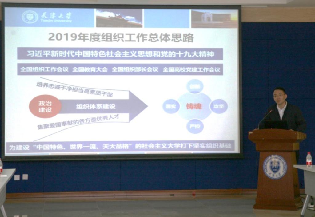 会上,组织部副部长赵成志围绕“铸魂、落实、攻坚、创新、严控”等五个方面作2019年组织部工作要点汇报。2019年,组织部将以贯彻“四个会议”、落实四个文件为抓手,进一步构建完善干部考核评价体系、基层党建体系和大培训体系;将结合各项主题活动,着力提升基层党建质量、大力选拔培养年轻干部;将建立“校院协同”机制,不断推进干部队伍建设规划,打造“同心圆”体系,发挥党组织政治功能,全面提升组织力;还将加强顶层设计,规范组织设置与管理,强化干部日常监督管理,为建设“中国特色、世界一流、天大品格”的社会主义大学打下坚实的组织基础。