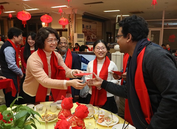 留校师生和留学生们表演了精彩纷呈的文艺节目,精彩绝伦的吉他演奏、热情洋溢的舞蹈串烧、浪漫唯美的歌曲独唱……精彩的表演博得了阵阵掌声。在活动的抽奖环节,各学院、部门的负责人还为留校师生抽出了幸运和惊喜。更令留校学生们惊喜和感动的是,雷鸣、贾启君等还为在场的每位中外学生送上红包和精选图书。“一个红包一本书”,这份别样的新年礼物,传递出天津大学对学子们满满的祝福、关爱和期许。学校准备的书籍包括《习易近人》《科学是什么》《智能时代》等。