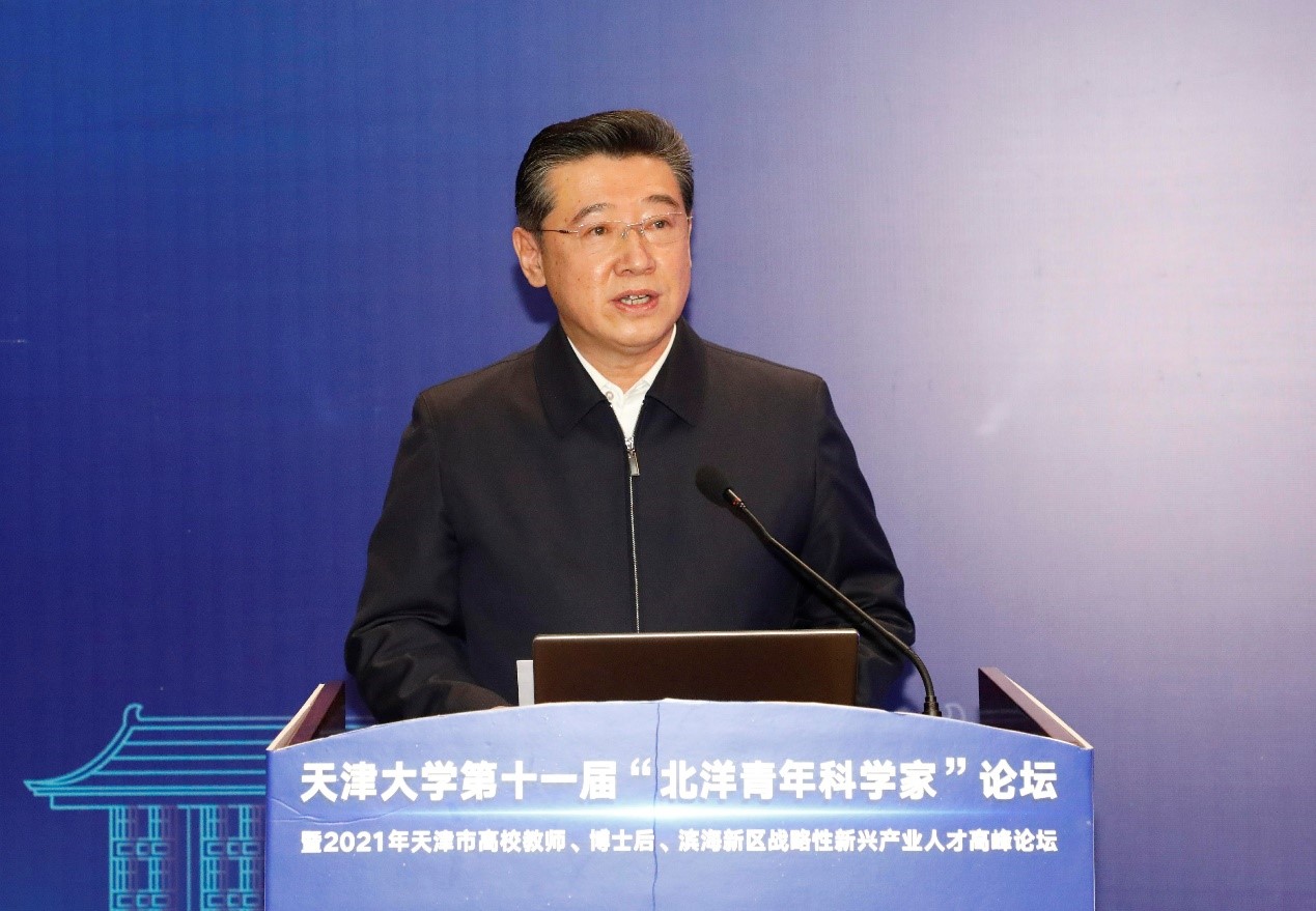 本站讯(通讯员 韩晓萌 摄影 唐蒙)为进一步汇聚优秀人才,2021年12月19日,第十一届北洋青年科学家论坛暨2021年天津市高校教师、博士后、滨海新区战略性新兴产业人才高峰论坛在天津大学隆重举行。天津大学党委书记杨贤金出席活动并致辞。