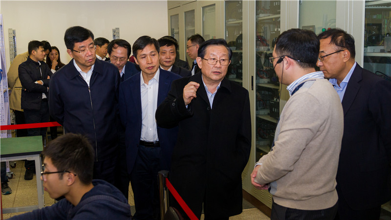 天津大学最早在国内开展微电网研究工作,作为首席科学家单位承担了国家“973项目”,成果在我国60%以上的地区、数十个高可靠性供电园区获得成功应用,并逐渐走向国际。万钢一行走进了天津大学智能电网教育部重点实验室,认真观摩了电流源逆变器系统和多端口电能路由器系统,深入了解天津大学微电网关键技术及应用、微电网保护与控制管理系统,并听取了天津大学智能电网教育部重点实验室主任、自动化学院教授王成山,学院青年教师何晋伟、李斌所作的工作汇报。万钢指出,天津大学要践行创新驱动发展战略,早日实现新的突破。