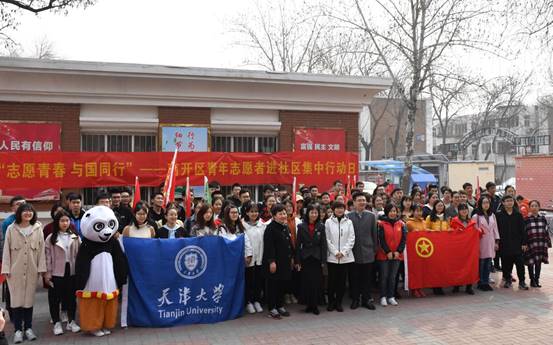 本站讯(通讯员 刘佳)3月3日上午,在学雷锋纪念日、中国青年志愿者日到来之际,天津大学70余名青年志愿者走进南开区四季村社区开展“志愿青春 与国同行”集中志愿服务活动。本次活动由南开区团委和天津大学团委共同组织,旨在贯彻落实习近平总书记在津考察时对志愿服务工作提出的重要指示精神,引导团员青年以志愿服务的方式积极投身区域发展建设,弘扬雷锋精神、志愿服务精神,活动得到卫津路校区各学院团委积极响应。南开区团委书记韩铮、天津大学团委书记吕静、南开区团委副书记刘亮、南开区学府街团工委书记张晶凌、四季村社区党委书记、居委会主任张秀芳到场参加活动。