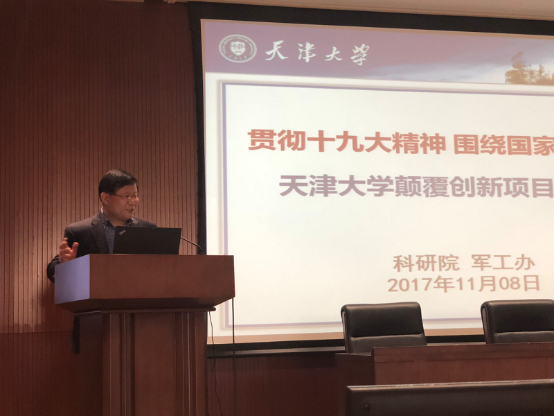 本站讯(通讯员 甘霖)11月8日,为贯彻十九大精神,围绕国家战略需求,科研院在新校区组织召开了“天津大学颠覆创新项目推动会”。会议由天津大学副校长元英进召集,科研院副院长封伟主持,各学院科研副院长、科研秘书及百余位中青年教师参会。