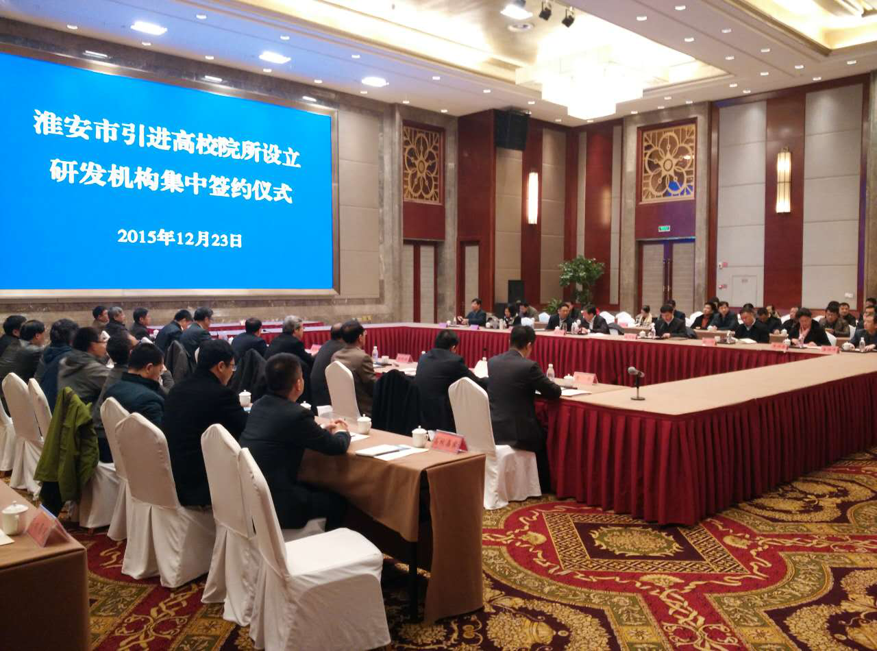 本站讯(通讯员 霍焱)12月23日,天津大学参加淮安市人民政府主办的“引进高校院所设立研发机构集中签约”活动。淮安市副市长唐道伦、科技局局长李太生、各县(区)副县(区)长、人才办、科技局主要负责同志出席,我校校长助理刘耀昌、科研院副院长杨明海、技术转移中心工作人员应邀参加了签约仪式,同时应邀参加的还有安徽理工大学、中国医药科技大学、南京邮电大学等九所高校代表。签约仪式由李太生主持。