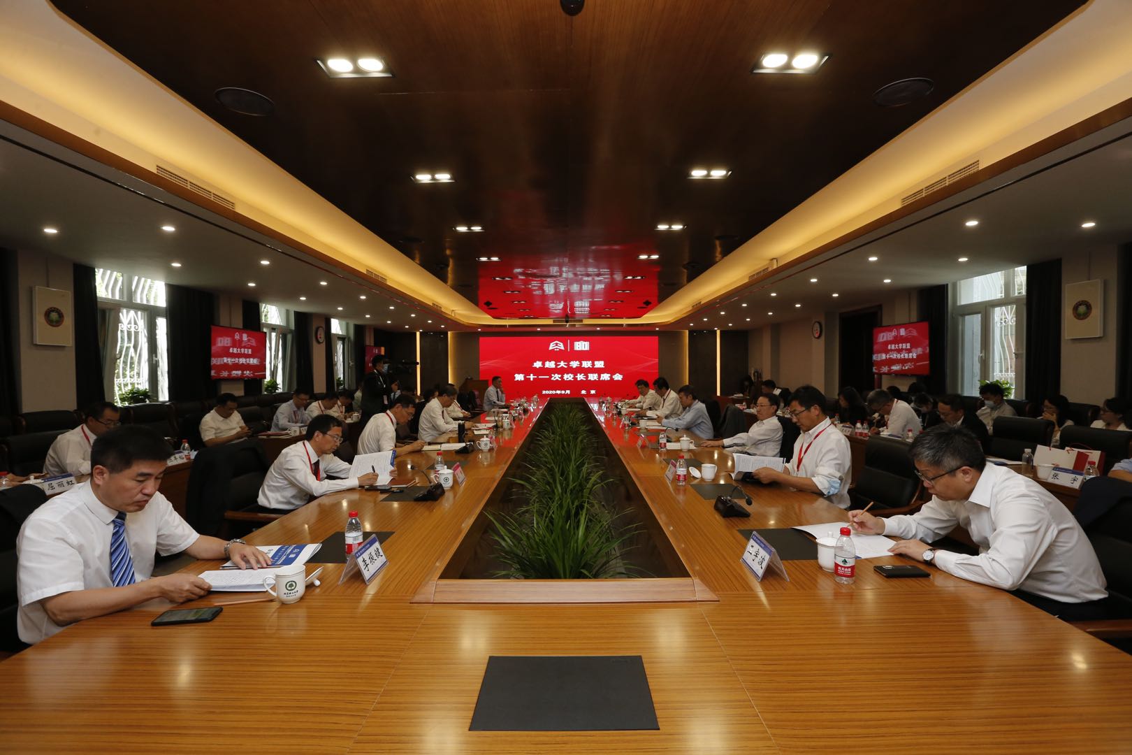 本站讯 9月19日,卓越大学联盟第十一次校长联席会在北京理工大学中关村校区二号办公楼133会议室召开。中国工程院院士、天津大学校长金东寒与重庆大学校长张宗益、大连理工大学校长郭东明、东南大学校长张广军、华南理工大学校长高松、同济大学校长陈杰、西北工业大学党委书记张炜、北京理工大学校长张军、哈尔滨工业大学副校长曹喜滨等共同出席会议。会议由北京理工大学副校长王晓锋主持。