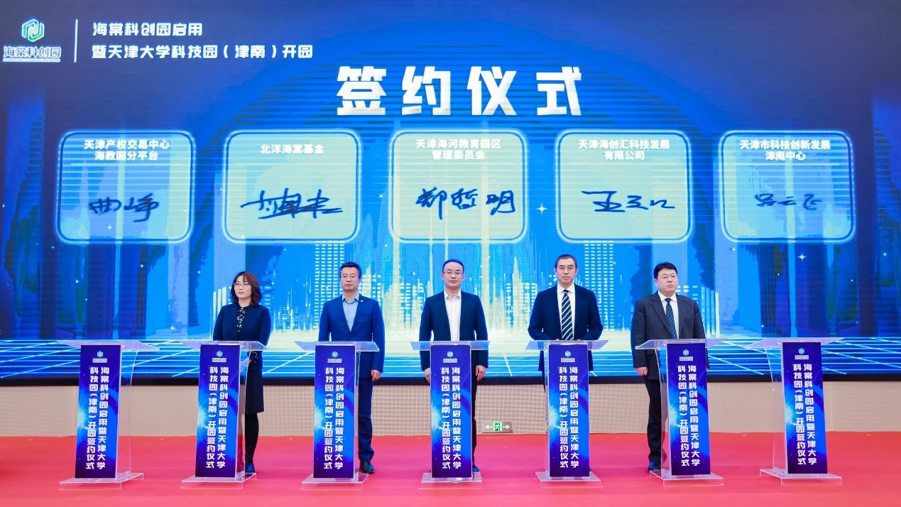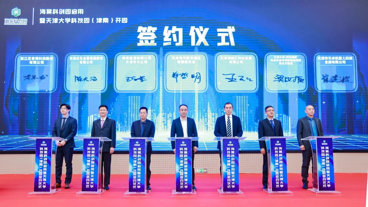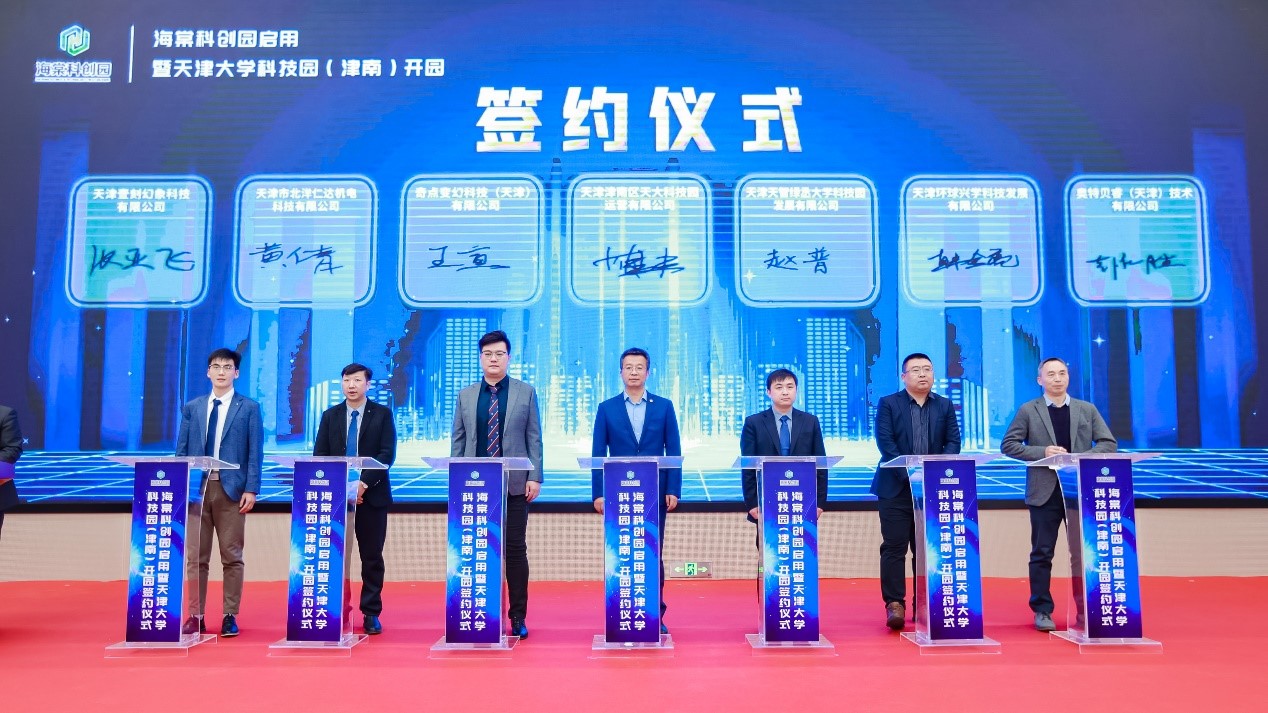 在仪式上,天津津城时代投资发展有限公司、天津海河教育园区管理委员会、天津津南区天大科技园运营有限公司、天津天智绿丞大学科技园发展有限公司、天津海创汇科技发展有限公司与入驻企业成功签约,天津海河教育园区管理委员会与服务平台成功签约。
