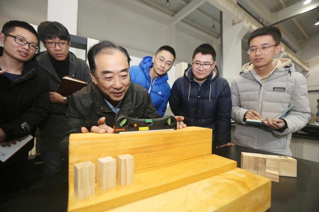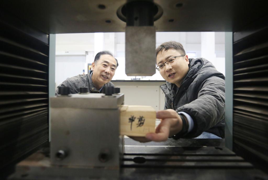 空间力学团队徐家福高级工程师(右四)与团队成员测试着陆器各种试验面的材料参数
