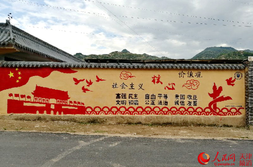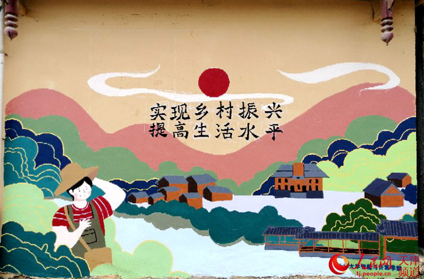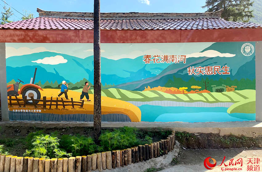 天津大学学生为贫困县彩绘的“会说话的景观墙”。天津大学供图