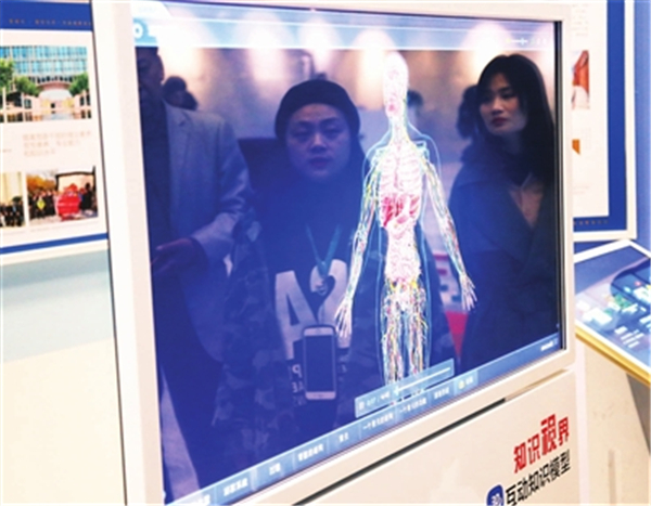 天津市民可在手机或平板电脑上下载“学习通”APP,输入邀请码“tjzhixue”,便可登录“天津市全民智慧学习平台” 图为市民体验3D互动知识模型等智慧学习平台内容。 本报记者 姜宝成 摄