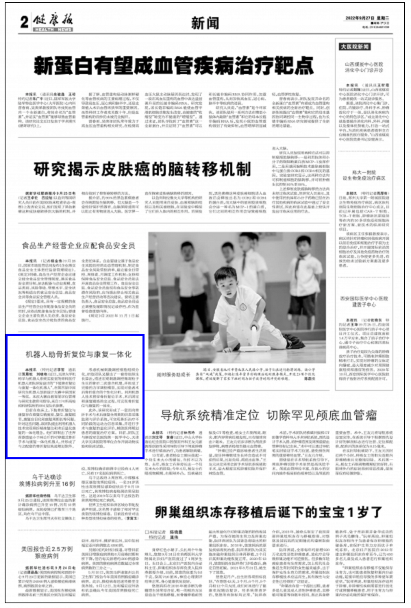 此外,该研究形成了一套面向骨折手术与术后康复全周期的信息采集监测与评价系统,可实现骨折治疗不同阶段的运动力信息采集,并进行手术与康复的量化评价,辅助医师规划患者的康复治疗方案。目前,团队正与解放军总医院第一医学中心、天津大学天津医院等单位合作开展动物实验和临床试验。