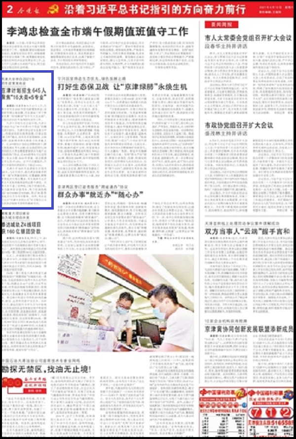 天津大学2021年在津招生计划为645人,与往年持平,是在津录取最多的“双一流”A类建设高校,在普通批、特殊类型批次实现全覆盖,考生填满专业志愿且不重复则确保进档志愿不调剂。天津大学开通了各种线上线下咨询方式,努力服务好全国考生,两个咨询热线022-60316985/27405486,共计50部热线电话全天为考生服务。另外,考生还可关注“天津大学招生办”官方微信公众号获取详细报考资料和最新资讯。