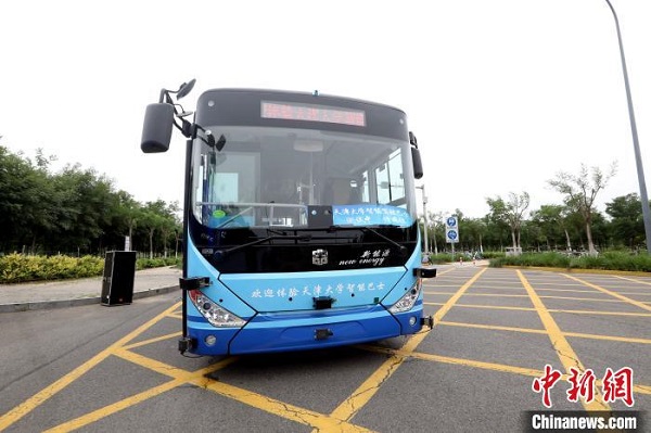 中新网天津6月23日电(记者 张道正 通讯员 刘晓艳)23日下午,天津大学北洋园校区东门外的智能网联汽车测试道路起点,两辆蓝白相间车身上写着“天津海河教育园智能巴士”的公交缓缓启动,象征着28公里长的智能网联公交常态化开放运行线路在海河教育园区落成。该活动也是第四届世界智能大会智慧交通的云体验活动之一。