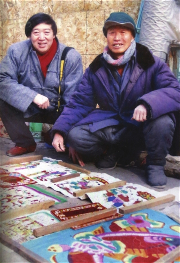 早年间,冯骥才先生在集市上与摆摊的王学勤合影。(受访者提供)