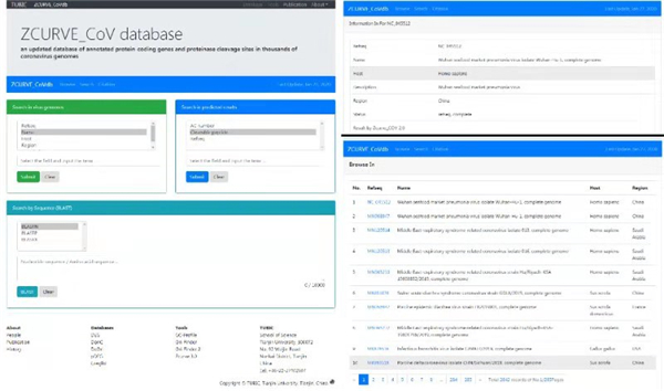 新型冠状病毒基因组注释数据库 ZCURVE_CoV Database 网站截图