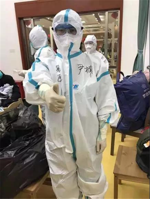 1月28日,中共党员、护师、附属医院手术室护士尹楠进入了“红区”病房正式开始工作。她说,在进入病房前穿上防护服的那一刻,之前的紧张、不安都消失了,心里想的只有如何配合医生护理好患者,如何更好为患者解除病痛,怎样调整患者的心态,坚定他们战胜病魔的信心。