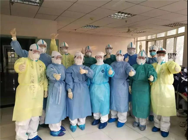 “在穿戴上厚重、严密的防护服、防护鞋、口罩、护目镜后,平时熟练的配液、输液、吸氧等工作变得小心翼翼,以前轻快的脚步也变得步履沉重,但是看见患者为我们竖起的大拇指,这些辛苦就一扫而空了。经过医疗队一天的辛勤工作,到当天晚上已经收治了60余名患者。”