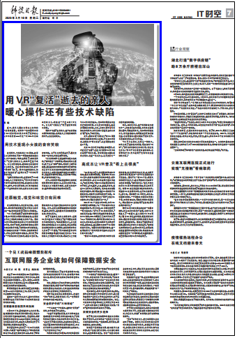 除了无法满足人的五感需求外,运用VR技术让亲人“死而复生”这个项目还有很多不成熟的地方。“妈妈看到的女儿、女儿经历的各种场景以及女儿说的话,都是按照提前编排好的剧本来演绎的,就好像母亲和女儿合演了一个话剧。”天津瀚海星云数字科技股份有限公司总经理高振元表示,“未来随着人工智能技术的发展,可以把人工智能与VR技术结合起来。比如母亲用语言表达自己情感的时候,女儿会实时地回复,这就会用到语音识别、交互、深度机器学习等更加复杂的技术,实时互动才会让逝去的人真正‘活’过来。”高振元说。
