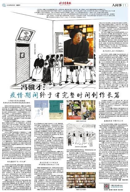 因为疫情,冯骥才有了更多待在自己书房的时光,“我每天在书房7个小时左右,写作要每天保证四五个小时,然后看大量的学院研究成果材料论文,家里就我和夫人,有时她会给我倒杯水,送点水果。”