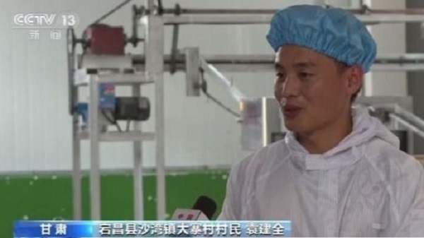 宕昌县沙湾镇大寨村村民 袁建全:就在这个挂面厂上班,工资非常好, 一个月4000元,解决了我们全家人的生活问题。